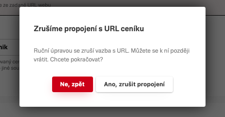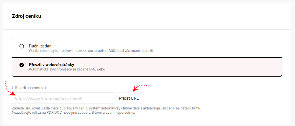 - Zadáte URL adresu stránky, kde máte zveřejněný ceník,